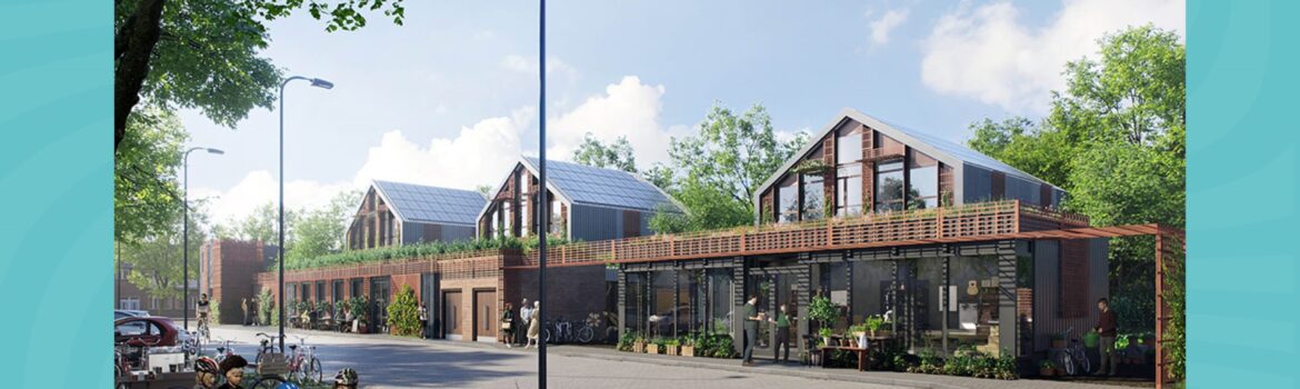 − Tenslotte ben je welkom bij Woongroep Boschgaard in ’s-Hertogenbosch. Bouwbedrijf Versteegden en Boschgaard realiseren hier 19 sociale huurwoningen met een wijkcentrum voor Zayaz, waarbij ze meer dan 85% van hergebruikte en andere ‘oogstmaterialen’ gebruiken.